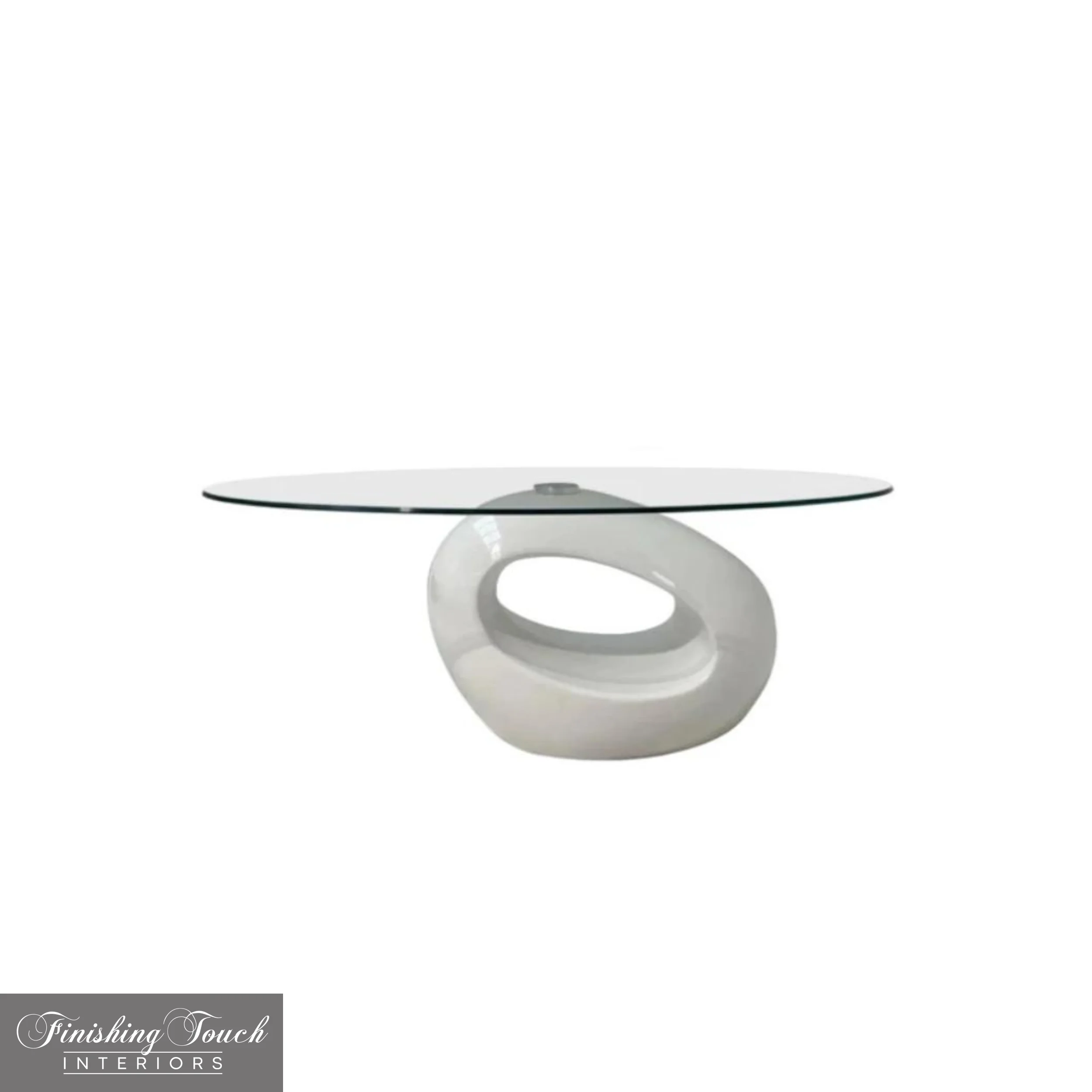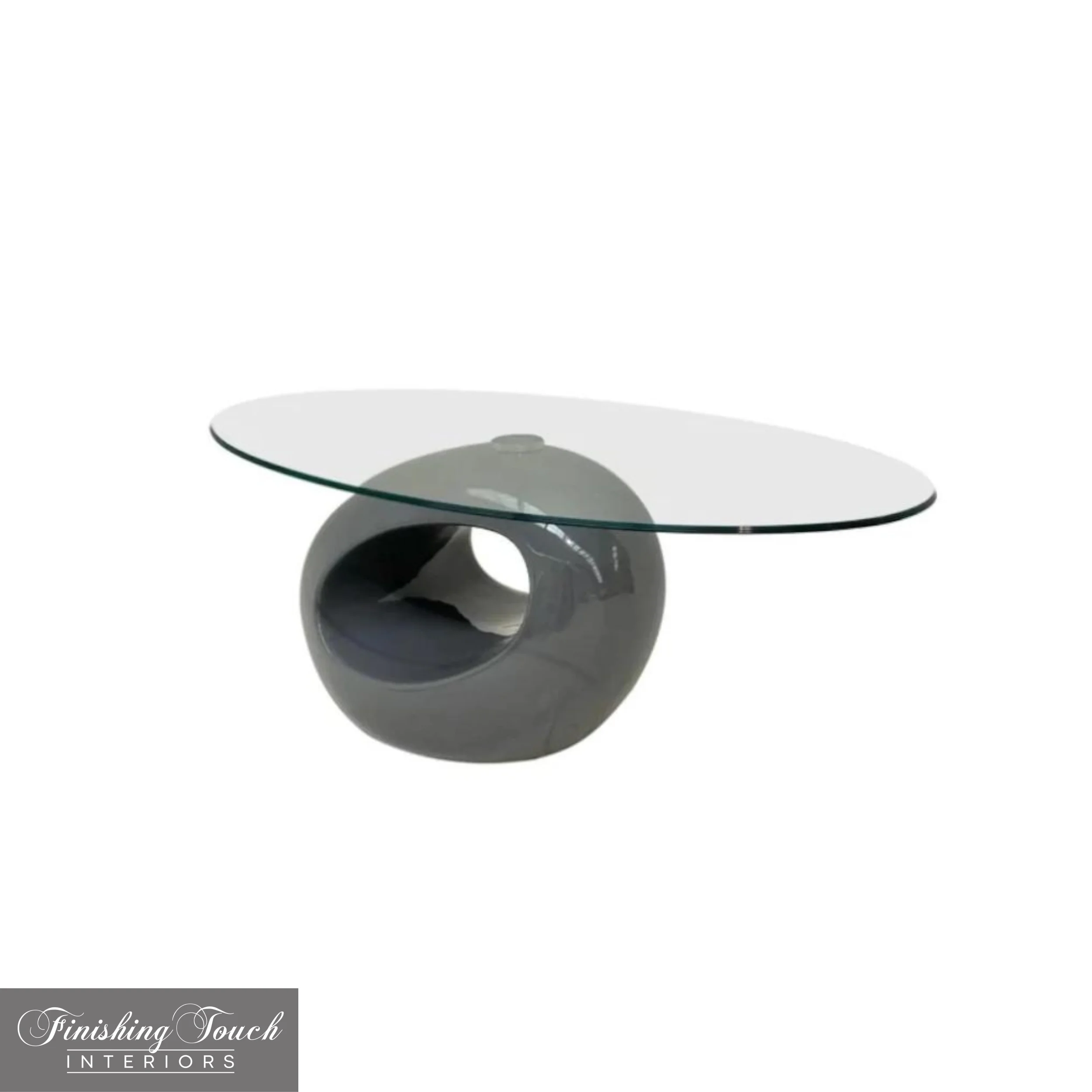 - Oval Glass top is balanced on a sublime spherical base below.