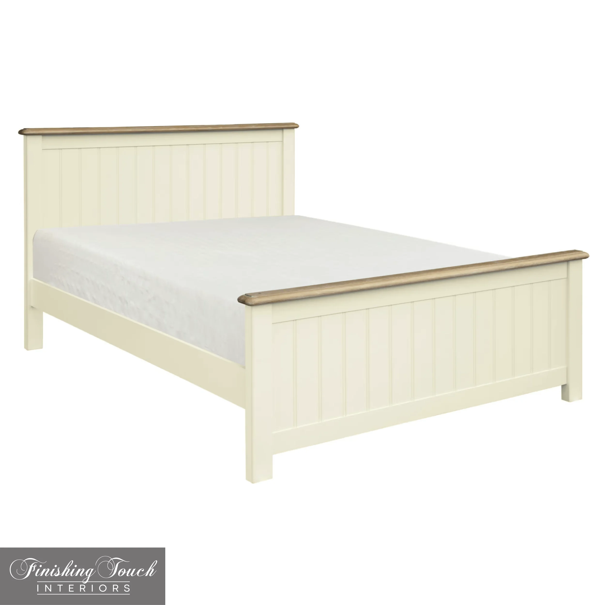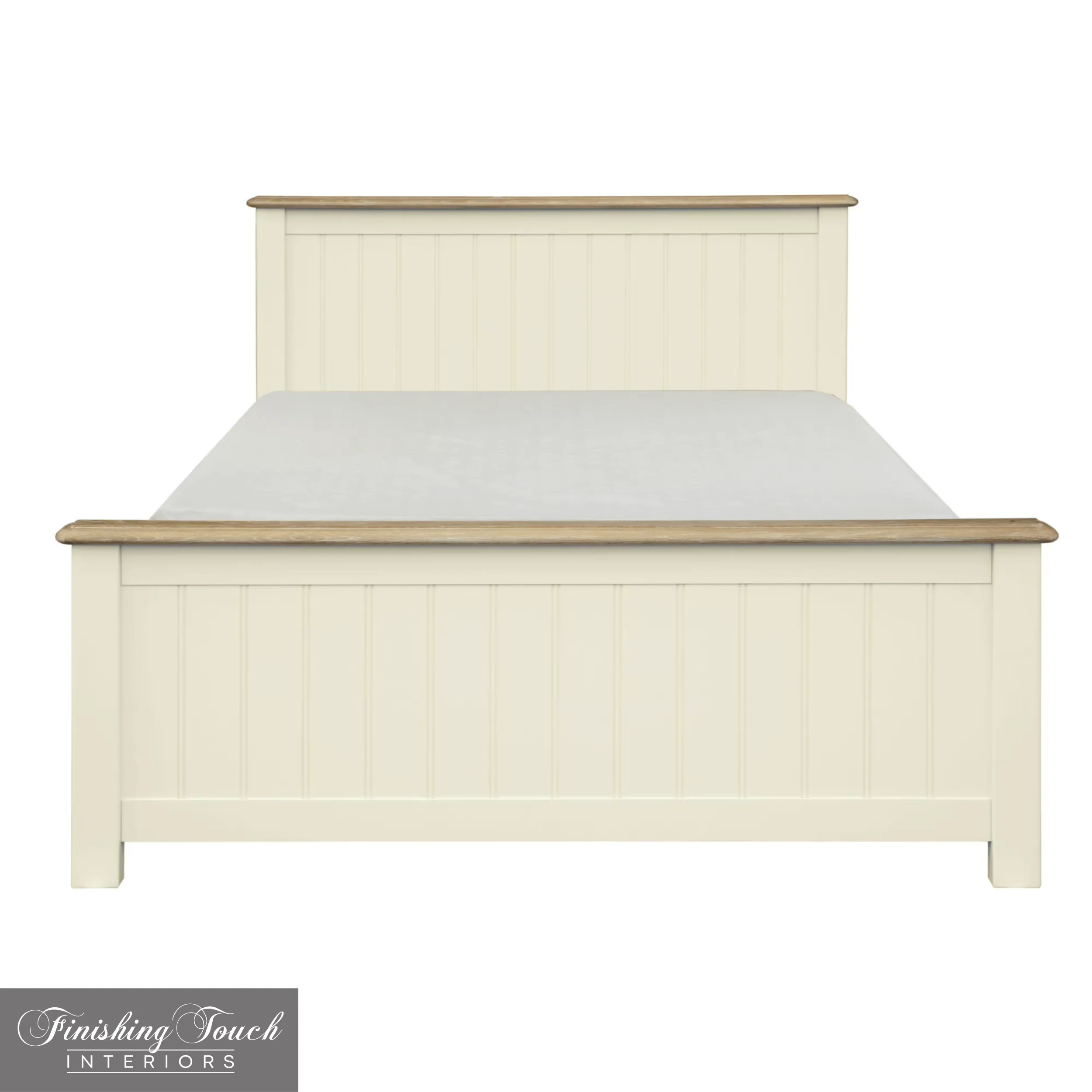 The Megan Oak Bed is designed in a French style finished with simple panelling detail. The Megan bed has a minimalist yet modern design, which is sure to suit a range of interiors. The frames are finished in subtle ivory with washed oak tops which will add a beautiful touch to your home. Complete your home by pairing the Megan Oak Bedframe with other items in the Megan Bedroom Range.